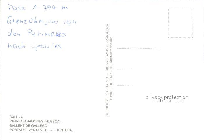 Sallent de Gallego Pirineo Aragones Grenzuebergang postalisch nicht gelaufen Erhaltung siehe scans