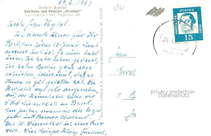 33600957 alte Postkarte Sallneck Fliegeraufnahme Gasthaus Pension Hirschen postalisch gelaufen Erhaltung siehe scans [LiesaD40] KatCode: 11110008336074