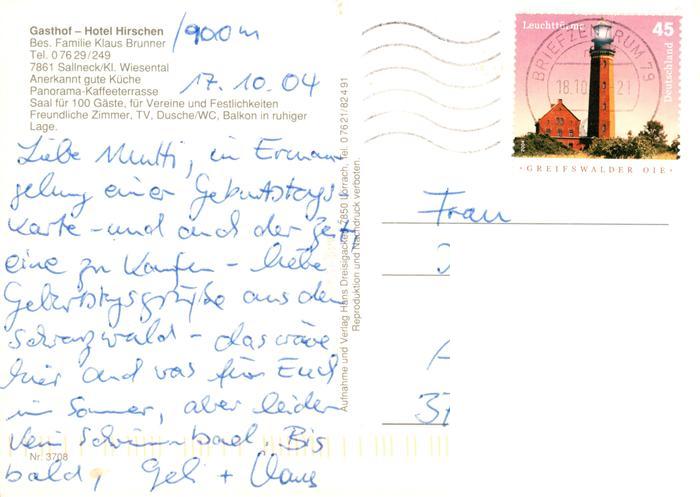 73881334 alte Postkarte Sallneck Gasthof Hotel Hirschen Terrasse Panorama Gastraum postalisch gelaufen Erhaltung siehe scans [WerneD78] KatCode: 11110008336074