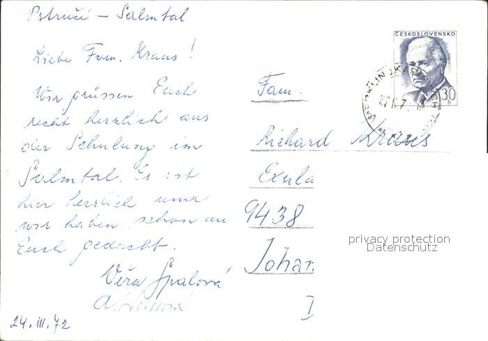 12513171 old postcard Salmthal Hotel Zelene Udoli postalisch gelaufen Erhaltung siehe scans KatCode: 11520