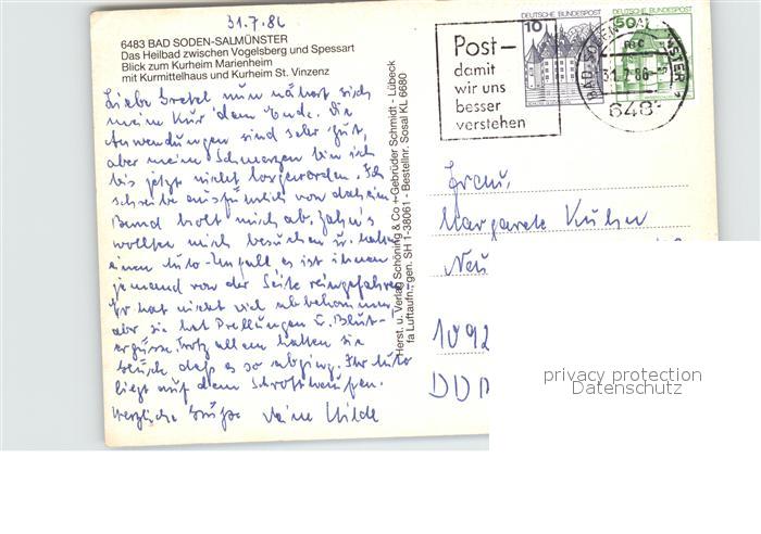 72533820 alte Postkarte Salmuenster Bad Soden Fliegeraufnahme Heilbad mit Vogelsberg und Spessart postalisch gelaufen Erhaltung siehe scans [LiesaD40 kt094box] KatCode: 11110006436001