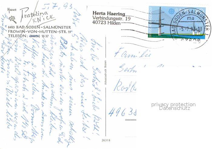 72729317 alte Postkarte Salmuenster Bad Soden Haus Pratolina Frown von Hutten Strasse postalisch gelaufen Erhaltung siehe scans [LiesaD40] KatCode: 11110006436001