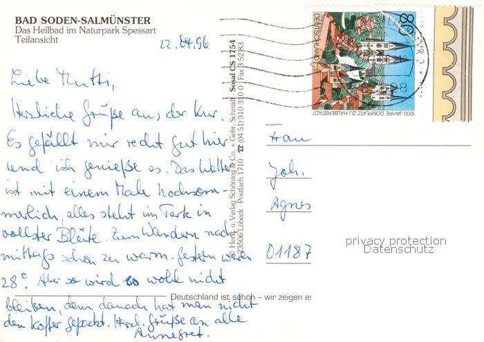 73080525 alte Postkarte Salmuenster Bad Soden Heilbad im Naturpark Spessart Fliegeraufnahme postalisch gelaufen Erhaltung siehe scans [FriedD77] KatCode: 11110006436001