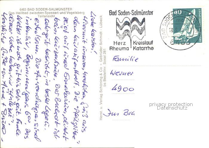 72533641 alte Postkarte Salmuenster Bad Soden Heilbad zwischen Spessart und Vogelsberg Fliegeraufnahme postalisch gelaufen Erhaltung siehe scans [FriedD77 kt118box] KatCode: 11110006436001
