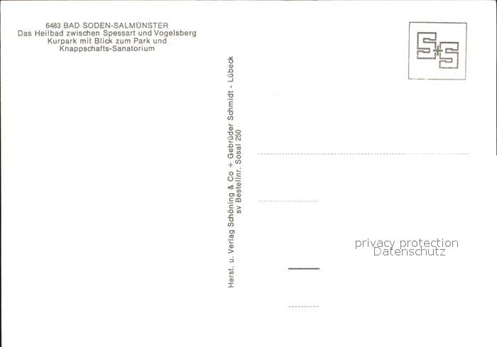 72507561 Salmuenster Bad Soden Kurpark mit Kanppschafts-Sanatorium postalisch nicht gelaufen Erhaltung siehe scans KatCode: 11110006436001