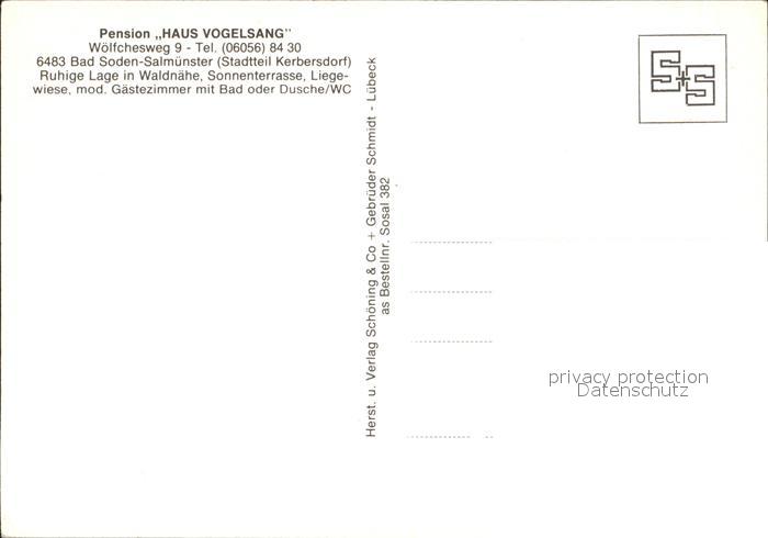 72016166 Salmuenster Bad Soden Pension Haus Vogelsang postalisch nicht gelaufen Erhaltung siehe scans KatCode: 11110006436001