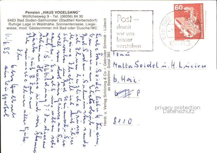 72014735 alte Postkarte Salmuenster Bad Soden Pension Haus Vogelsang postalisch gelaufen Erhaltung siehe scans KatCode: 11110006436001