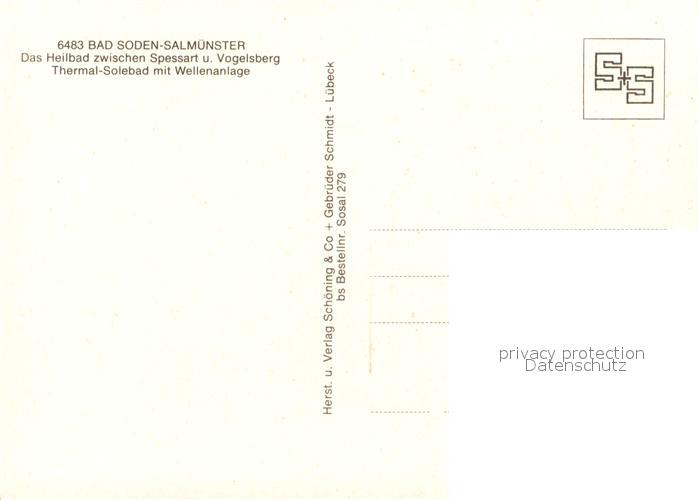 73163022 Salmuenster Bad Soden Thermal-Solebad mit Wellenanlage postalisch nicht gelaufen Erhaltung siehe scans [LiesaD40] KatCode: 11110006436001
