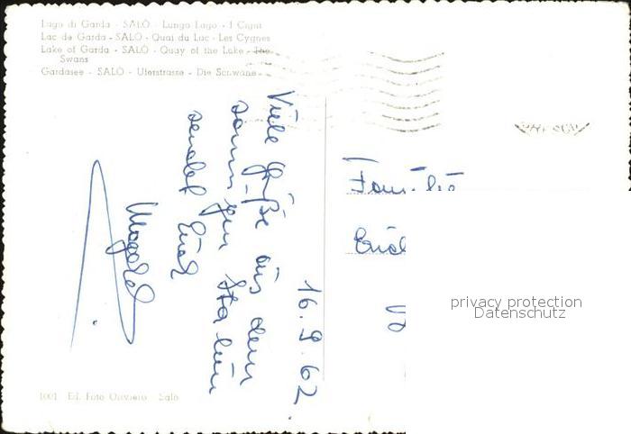 old postcard Salo Lago di Garda Lungo Lago I Cigni postalisch gelaufen Erhaltung siehe scans