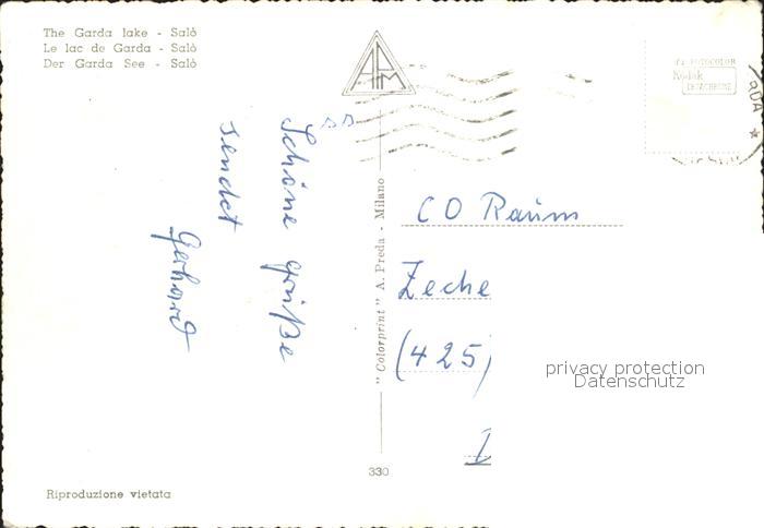 old postcard Salo Lago di Garda Lungolago Schiff postalisch gelaufen Erhaltung siehe scans