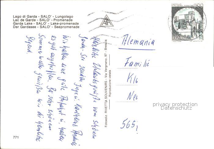 old postcard Salo Lago di Garda Promenade postalisch gelaufen Erhaltung siehe scans