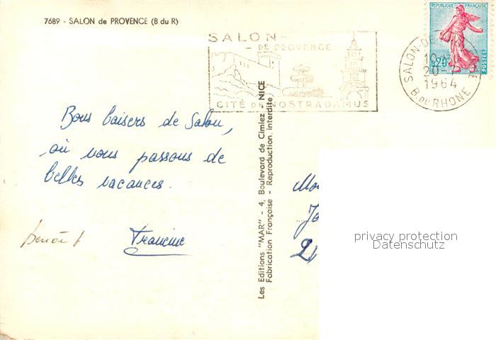 12983363 carte postale Salon-de-Provence Moosbrunnen Bourg Neuf Strassenpartie Panorama postalisch gelaufen Erhaltung siehe scans [FriedD77] KatCode: 11170013113103