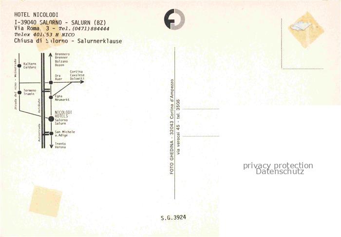 74085167 Salorno Salurn Bozen BOLZANO Suedtirol IT PanoramaHotel Nicolodi Portal postalisch nicht gelaufen Erhaltung siehe scans [WerneD78] KatCode: 11240