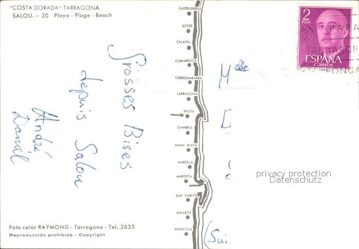 old postcard Salou Costa Dorada Tarragona Strand postalisch gelaufen Erhaltung siehe scans