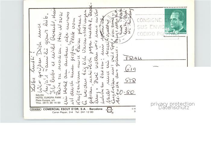 old postcard Salou Hotel Europa Park postalisch gelaufen Erhaltung siehe scans