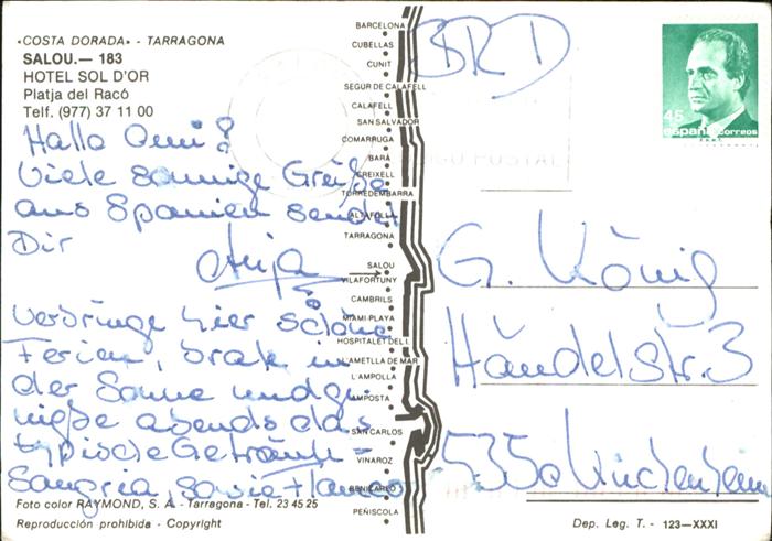 old postcard Salou Hotel Sol Dor postalisch gelaufen