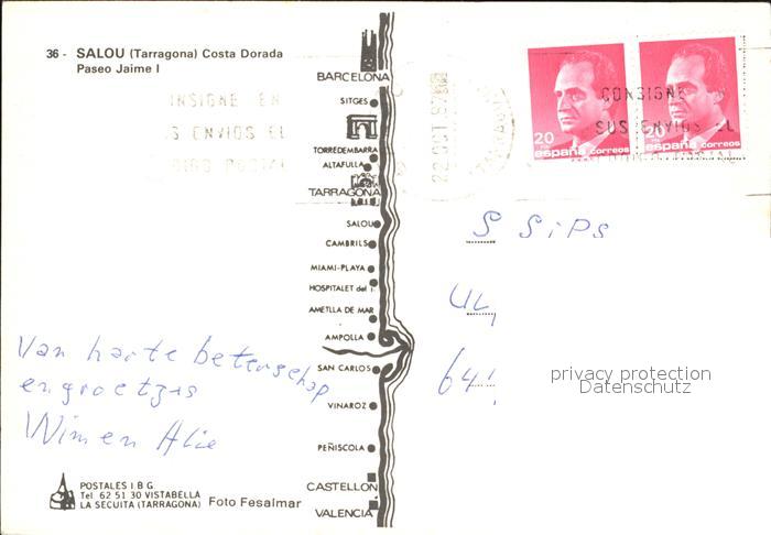 old postcard Salou Paseo Jaime I postalisch gelaufen Erhaltung siehe scans