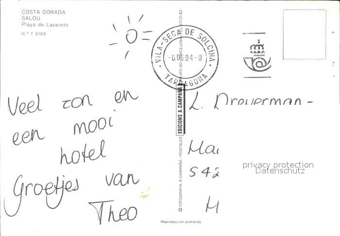 old postcard Salou Playa de Lazareto postalisch gelaufen Erhaltung siehe scans