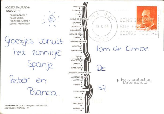 old postcard Salou Promenade JaimeI postalisch gelaufen Erhaltung siehe scans
