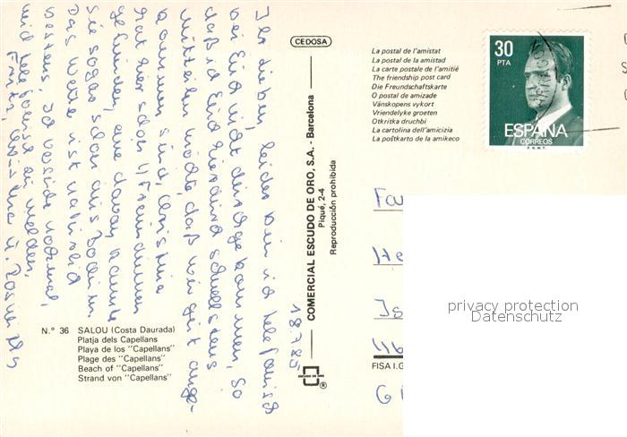 old postcard Salou Strand von Capellans Hotels postalisch gelaufen Erhaltung siehe scans [FriedD77]