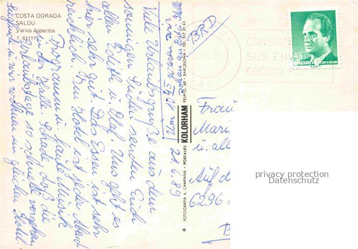 74075354 old postcard Salou Tarragona Costa Dorada ES Strand Promenade Teilansichten Hafen postalisch gelaufen Erhaltung siehe scans [WerneD78] KatCode: 11510
