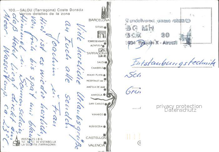 old postcard Salou Varios detalles de la zona postalisch gelaufen Erhaltung siehe scans