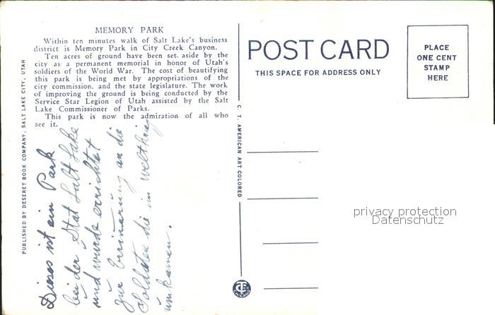 11712652 Salt Lake City Birds eye view of Memory Park City Creek Canyon postalisch nicht gelaufen Erhaltung siehe scans KatCode: 14140470000000