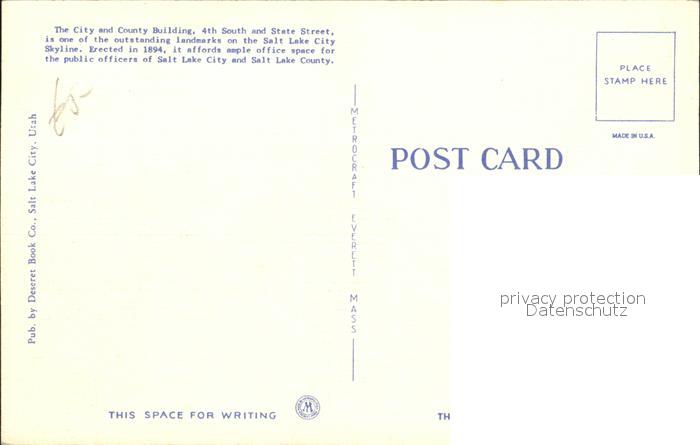 72306895 Salt Lake City City County Building postalisch nicht gelaufen Erhaltung siehe scans KatCode: 14140470000000