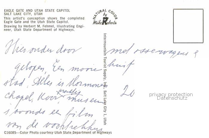 72904668 Salt Lake City Eagle Gate and Utah State Capitol Illustration postalisch nicht gelaufen Erhaltung siehe scans [FriedD77] KatCode: 14140470000000