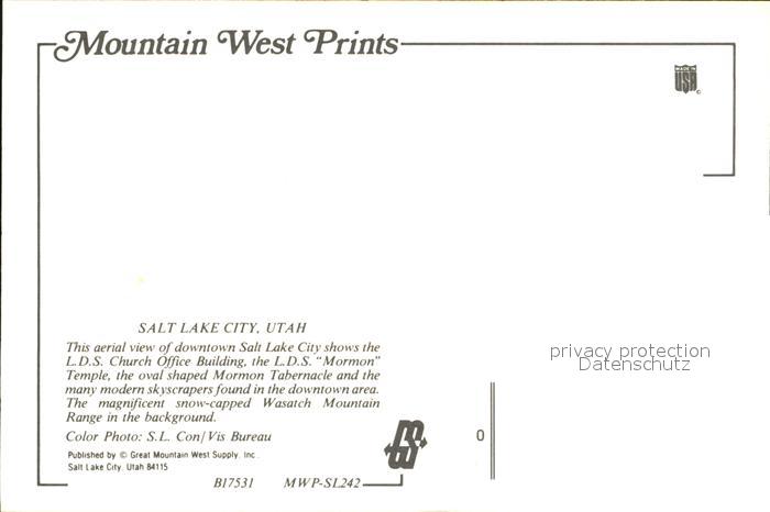 72590506 Salt Lake City Fliegeraufnahme postalisch nicht gelaufen Erhaltung siehe scans [LiesaD40] KatCode: 14140470000000