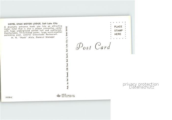 72143814 Salt Lake City Hotel Utah Motor bei Nacht postalisch nicht gelaufen Erhaltung siehe scans KatCode: 14140470000000