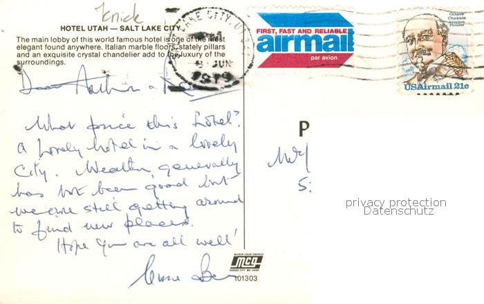73127752 old postcard Salt Lake City Hotel Utah postalisch gelaufen Erhaltung siehe scans [KathaD81] KatCode: 14140470000000