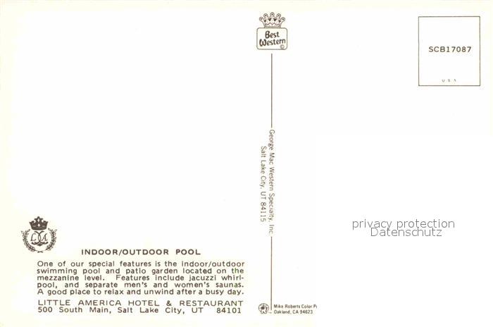 72636921 Salt Lake City Little America Hotel Swimmingpool postalisch nicht gelaufen Erhaltung siehe scans [WerneD78] KatCode: 14140470000000