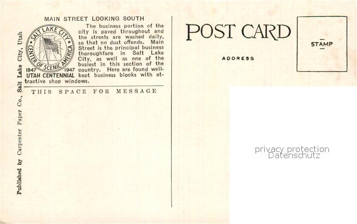 73118134 Salt Lake City Main Street postalisch nicht gelaufen Erhaltung siehe scans [KathaD81] KatCode: 14140470000000