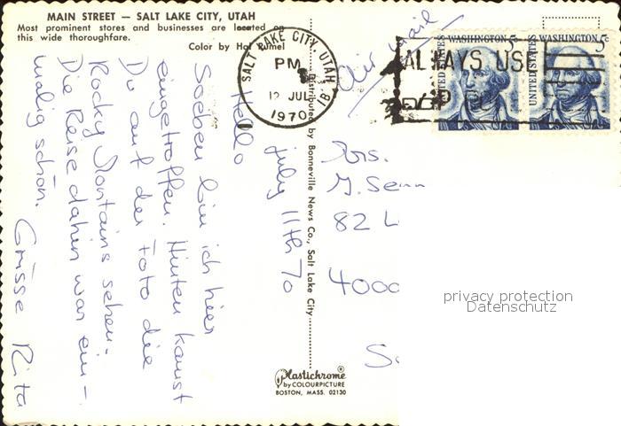 71605471 old postcard Salt Lake City Main Street postalisch gelaufen Erhaltung siehe scans KatCode: 14140470000000