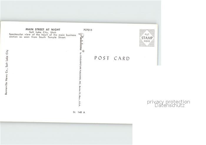 72329262 Salt Lake City Main Street at Night postalisch nicht gelaufen Erhaltung siehe scans KatCode: 14140470000000