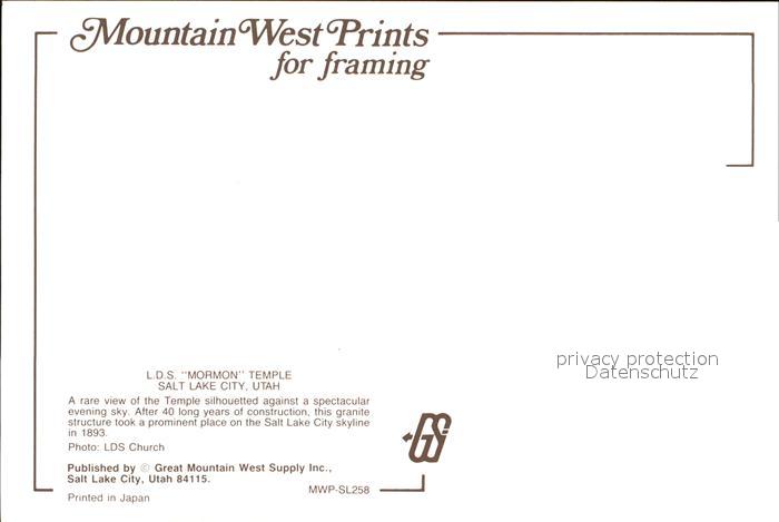 72590515 Salt Lake City Mormon Temple postalisch nicht gelaufen Erhaltung siehe scans [LiesaD40] KatCode: 14140470000000