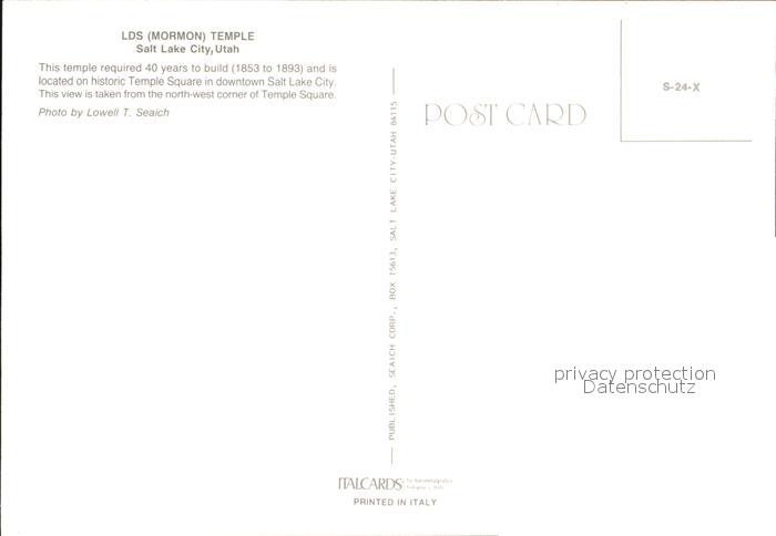 72590526 Salt Lake City Mormon Temple postalisch nicht gelaufen Erhaltung siehe scans [LiesaD40] KatCode: 14140470000000