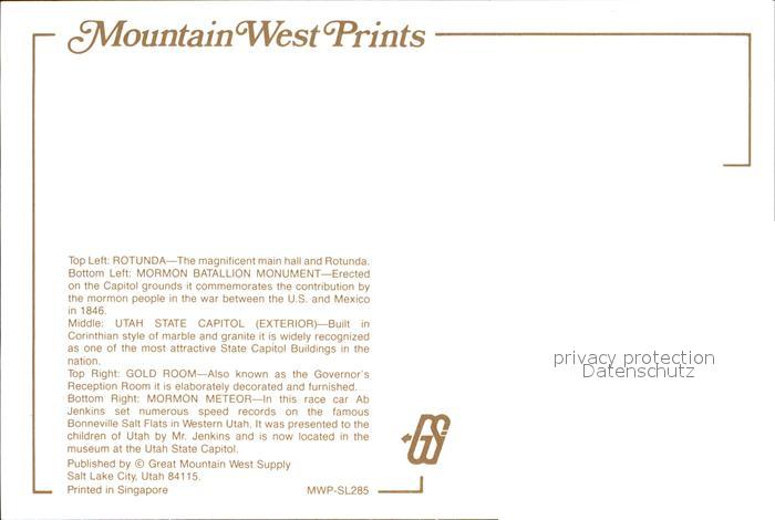 72590503 Salt Lake City State Capitol postalisch nicht gelaufen Erhaltung siehe scans [LiesaD40] KatCode: 14140470000000
