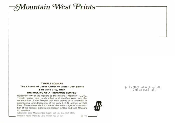 72636925 Salt Lake City Temple square Church of Jesus Christ postalisch nicht gelaufen Erhaltung siehe scans [WerneD78] KatCode: 14140470000000