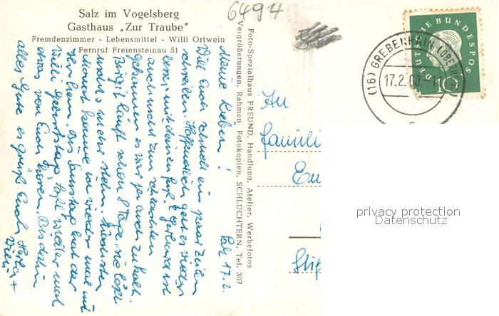 73706745 alte Postkarte Salz Lauterbach Hessen Gesamtansicht postalisch gelaufen Erhaltung siehe scans [LiesaD40] KatCode: 11110006535004