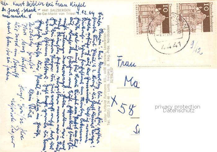 73852304 alte Postkarte Salzbergen Ve-Ge-Markt van Triest Luftaufnahmen postalisch gelaufen Erhaltung siehe scans [FriedD77] KatCode: 11110003454045