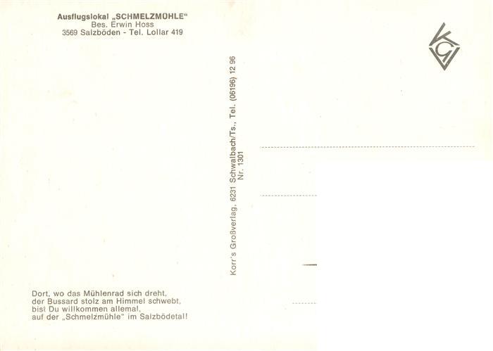 73876644 Salzboeden Ausflugslokal Schmelzmuehle postalisch nicht gelaufen Erhaltung siehe scans [WerneD78] KatCode: 11110006531013