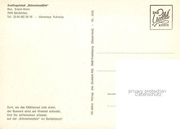 73000826 Salzboedetal Schmelzmuehle Ausflugslokal postalisch nicht gelaufen Erhaltung siehe scans [KathaD81] KatCode: 11110006534003