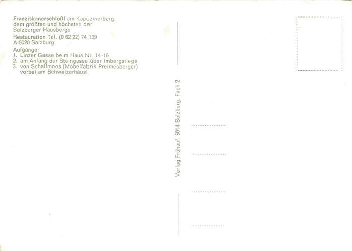 74141571 SALZBURG AT Franziskanerschloss postalisch nicht gelaufen Erhaltung siehe scans [IrynaD87] KatCode: 11390323050101
