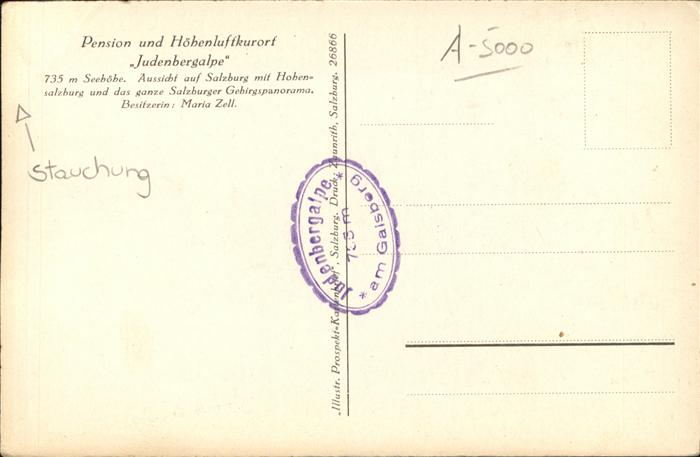 11299674 SALZBURG AT Gasthof Pension Judenbergalpe am Gaisberg Aussicht auf Salzburg Festung Hohensalzburg Salzburger Gebirgspanorama postalisch nicht gelaufen Erhaltung mit Maengel Alte Ansichtskarte Postkarte hz_F Katcode 11390323050101