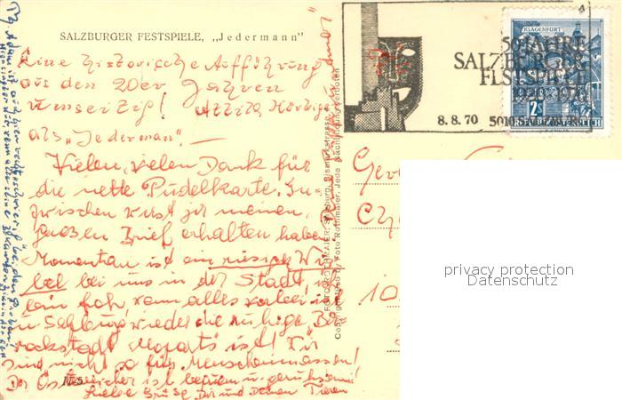 13657764 SALZBURG AT Jedermann Festspiele postalisch gelaufen Erhaltung siehe scans [WerneD78] alte Postkarte Wern Katcode 11390323050101