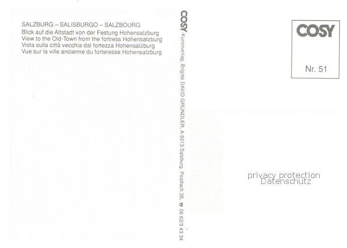 73001498 Salzburg Oesterreich Altstadt Festung Hohensalzburg postalisch nicht gelaufen Erhaltung siehe scans [AndreD76] KatCode: 11390323050101