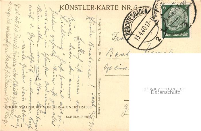 43091043 alte Postkarte Salzburg Oesterreich Festung Hohensalzburg von der Aignerstrasse Zeichnung postalisch gelaufen Erhaltung siehe scans [WerneD78] KatCode: 11390323050101
