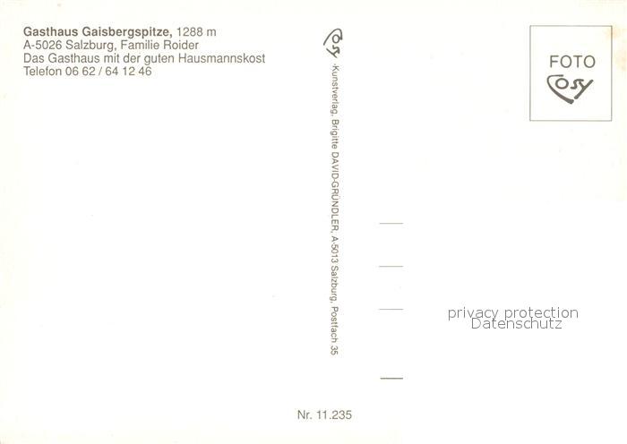 73049135 Salzburg Oesterreich Gasthaus Gaisbergspitze postalisch nicht gelaufen Erhaltung siehe scans [KathaD81] KatCode: 11390323050101